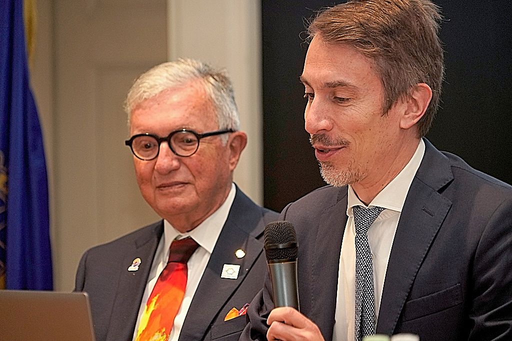Nel corso della conferenza, il Governatore ha consegnato al Direttore del Museo il contributo raccolto attraverso uno spettacolo di varietà, realizzato dalla Commissione Organizzazione Spettacoli e Fundraising diretta dal Maestro Giorgio Bolognese, contributo che consentirà il restauro di un importante reperto archeologico, la Stele di Meru.